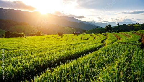 landscape, rice, terrace, mountain, sunset, vale, green, gold, sunlight, cloud, hill, farmland, agriculture, scenic, nature, vibrant, beautiful, peaceful, serene, picturesque, tranquil, horizon, elevation, asian, countryside, rural, idylli, huge, expansive, fertile, flourishing, crop, paddy, lush, mountainous, path, small, building, illuminated, bright, sky, cultivated, terraced, dramatic