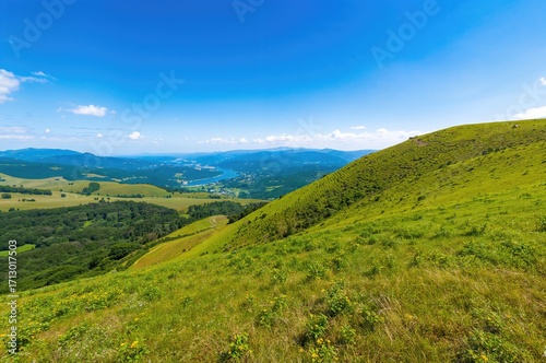 hill, vale, landscape, nature, scenic view, countryside, elevation, panoramic, rolling hills, tranquil, farmland, idylli, peaceful, vibrant, sunshine, sky, mountain, tree, hiking, travel, adventure, pasture, wilderness, flora, meadow, climate, environment, rock formation, beauty, ecosystem, exploration, vivid colors, summer, bright, natural beauty, remote, tranquil scene, agriculture, rural, greenery, horizon, blue skies