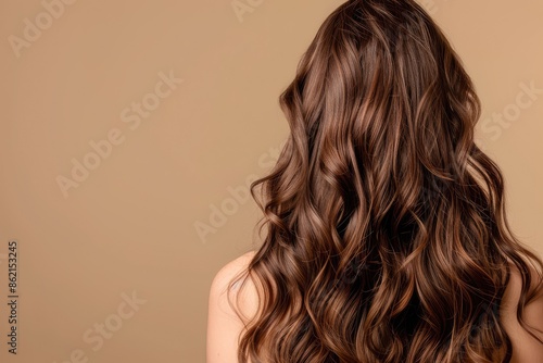 Lush, wavy hair cascading elegantly, with a clear, minimalist background providing ample copyspace, emphasizing the natural beauty and movement of the hair,