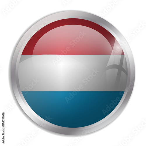 Luxembourg flag - glossy circle button displays a colorful flag representing a country cultural identity and heritage. The essence of national pride and unity.