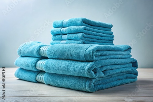 Luxurious azure towels create a serene spa ambiance; minimalist photography highlights their soft, harmonious texture.