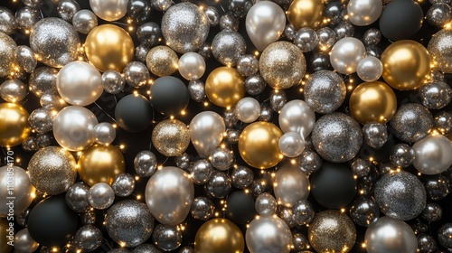 luxurious, balloon, shimmering, gold, silver, black, intertwined, twinkling, string, light, party, decor, elegant, festive, celebration, vibrant, glamourous, design, event, decoration, no people