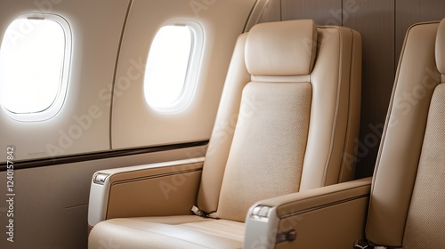 Luxurious Beige Leather Airplane Seats Private Jet Interior Comfortable Travel