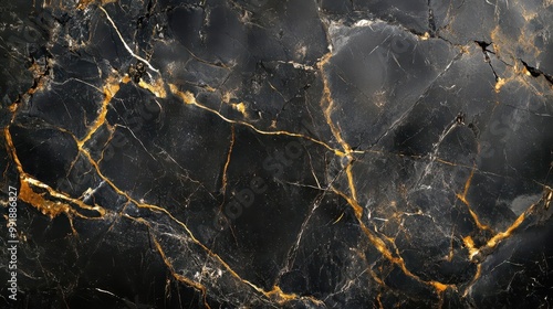 luxurious black marble surface with intricate gold and silver veining dramatic lighting emphasizes the stones depth and richness creating an opulent backdrop