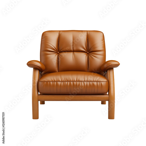 Luxurious Brown Leather Armchair with Wooden Legs - Front View