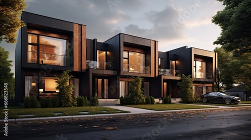 Luxurious dark townhouses. Urban luxury architecture concept.