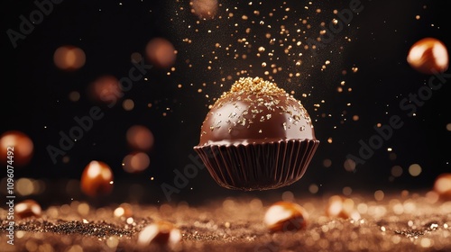 Luxurious Flying Belgian Praline: Glossy Hazelnut Milk Chocolate Shell Filled with Smooth Praline Cream - A Decadent Gourmet Dessert Delight.
