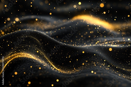 Luxurious Gold and Black Silk Fabric with Elegant Satin Folds, Shimmering Metallic Texture, and Premium Design for Glamorous Backdrops