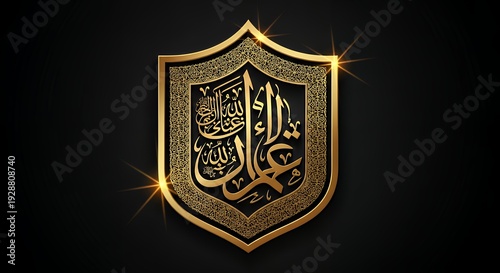 gold, gold, shield, calligraphy, arabic, islamic, muslim, religion, religious, elegant, luxury, ornate, intricate, pattern, design, black, background, texture, traditional, modern, emblem, symbol, artwork, graphic, illustration, abstract, glow, light, shine, metallic, beautiful, artistic, decorative, rich, premium, eid, ramadan, holy, sacred, spiritual, culture, oriental, celebration, greeting, border, frame, badge, ornament, vintage