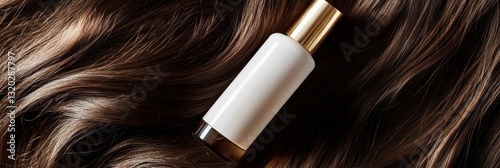 Luxurious hair care product mockup with glossy brunette hair background for elegant package design presentation