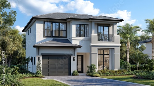 Luxurious modern home design with a two-car garage, sleek exterior, and spacious interiors for upscale living.