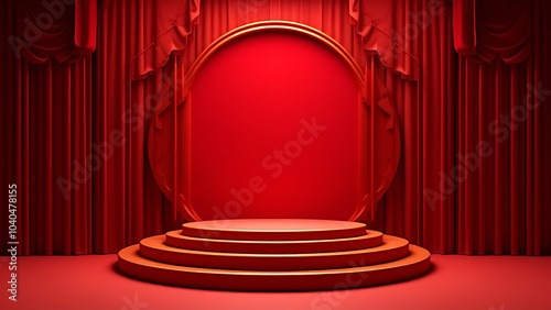 luxurious, red, gold, dais, perfectly, designed, showcase, product, grand, oriental, stage