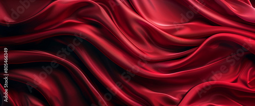 Luxurious red silk fabric with a smooth, shiny texture that flows in soft waves