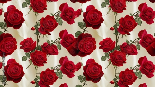 Luxurious Rose Elegance: A Seamless Pattern of Blooming Red Roses, Intricate Rose Symphony: A Romantic Wallpaper Concept
