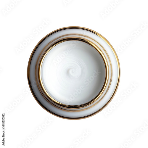 Luxurious White Cream in Gold-Rimmed Jar, Overhead View