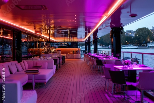 yacht, party, night, paris, deck, luxury, interior, dinner, view, elegant, river, celebration, atmosphere, lighting, modern, design, furniture, lounge, cocktail, eatery, stylish, evening, city, cruise, beautiful, scenic, vibrant, purple, pink, illuminated, nightlife, romantic, drink, boat, urban, france, europa, riverfront