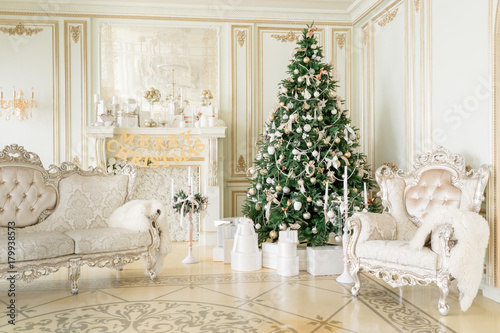 living room, christmas, tree, season, celebrate, room, christmas, nobody, luxury, decoration, living, festive, home, symbol, gift, light, decorative, ball, art deco, new, classic, present, celebration, candle, seasonal, lifestyle, tradition, tree branch, wall, white, winter, background, year, christmas tree, indoor, merry, ribbon, claus, glasses, spruce, gold, lot, detail, underneath, metaphor, interior, holiday
