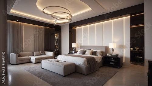 luxury bedroom design, elegant look, sofa, chair, nice setup