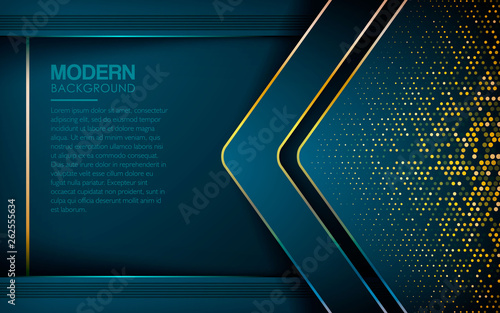 Luxury blue overlap layers abstract background. Modern shape with light golden line and golden glitters element decoration. Realistic dimension design vector illustration.