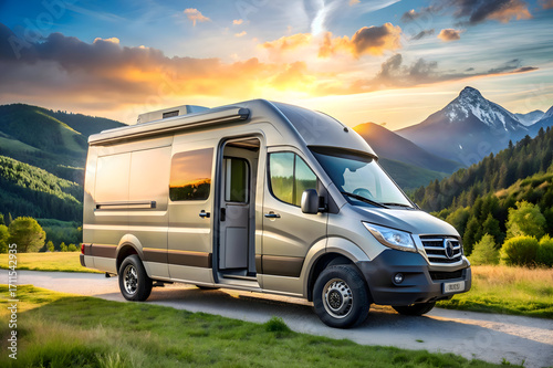 Luxury Campervan at Sunrise in the Mountains. The Ultimate Road Trip Vehicle
