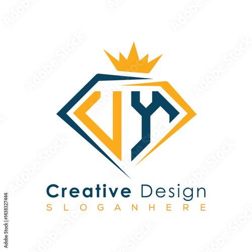 Luxury Initial Letter Monogram in Pentagon Diamond Shape with Royal Crown for Premium Branding & High-End Logo Design