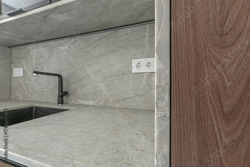 bright, black, stone, household, metal, elegant, cabinet, domestic, chrome, quartz, laundered, plumbing, tile, gold, backsplash, empty, water, counter, indoor, countertop, sink, faucet, kitchen, interior, design, home, house, clean, white, apartment, luxury, nobody, modern, style, contemporary, granite, real, new, cabinet, detail, tap, architecture, stainless, marble, room, estate, decor, remodel, renovation