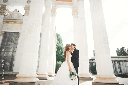 wedding, couple, bride, 2, city, love, people, young, woman, groom, man, flower, white, kiss, suit, family, joy, happy, feeling, ceremony, day, happiness, marriage, light, moment, smiling, girl, married, beautiful, dress, bouquet, closeup, expression, caucasian, together, cheerful, beauty, husband, sharing, closeness, dream, greece, celebration, throwing, blossom, union, affection, emotion, sharpened, contact