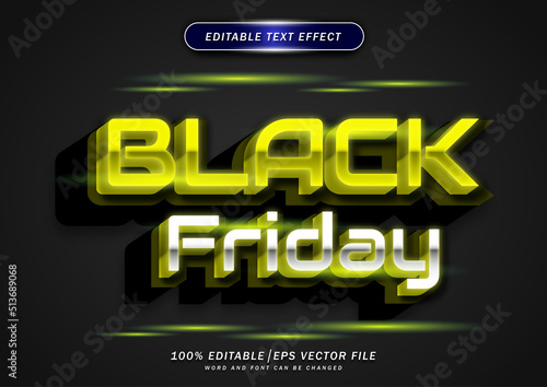 Luxury neon glow. Gold and black friday text effect editable.