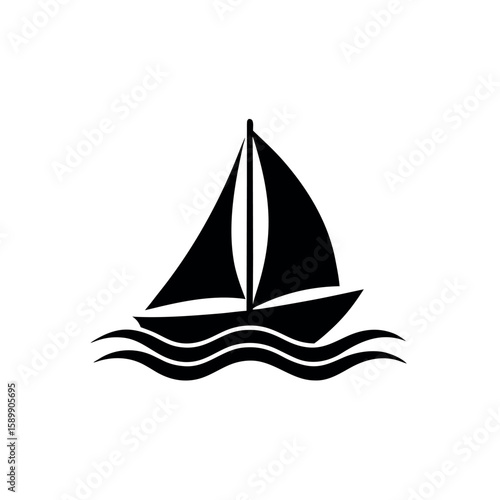 luxury, sailboat, wave, icon, vector, illustration, yacht, boat, ocean, sea, template, line, graphic, travel, water, vacation, symbol, minimal, ride, nautical, resort
