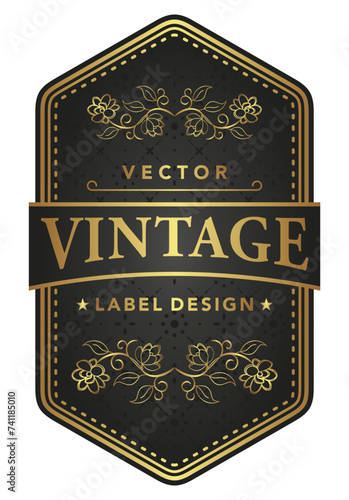 Luxury Vintage Label Wine, wedding invitation, Black and Gold Vintage Vector Template