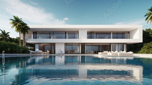 Luxury white beach house with sea view swimming pool and terrace in modern design