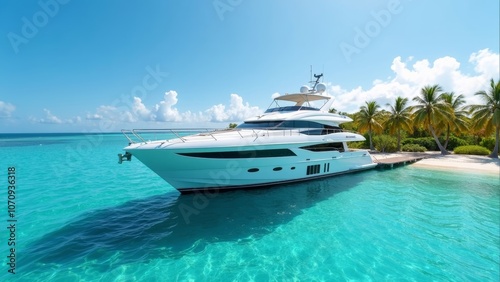 Luxury Yacht at Private Dock Surrounded by Crystal Clear Waters