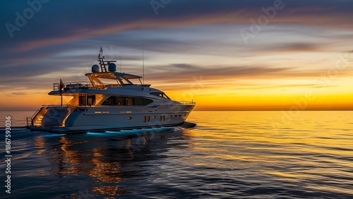 Luxury yacht at sunset over calm seas
