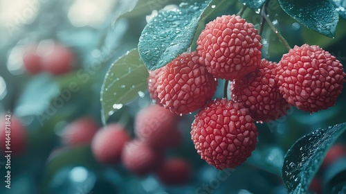 lychee, fruit, fruit, red, ripe, fresh, tropical, fruit farm, plant, tree, tree branch, leaf, nature, food, healthy, delicious, summer, vitamin, agriculture, harvest, farm, garden, organic, vegan, vegetarian, dessert, sweet, juicy, texture, background, closeup, macro, dew, drop, water, green, leaf, plantation, growing, abundance, vibrant, colourful, still life, photo, image