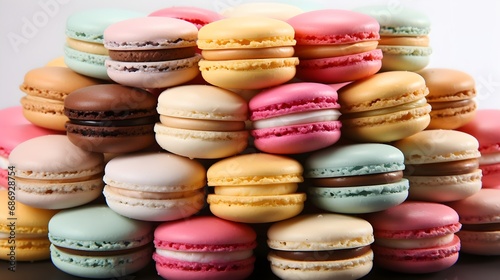 colourful, stacked, vibrant, dessert, pastry, rainbow, sweet, confectionery, epicure, bakery, layer, french, treat, delicate, bright, favor, culinary, indulgence, assorted, cheerful, tasty