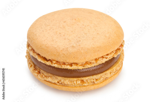 Macaron with salted caramel cookies isolated on a white background. French confection.