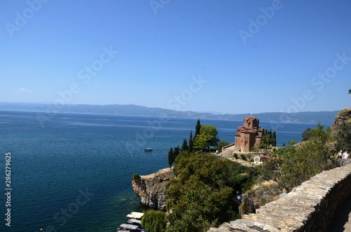 sea, coast, landscape, heaven, beach, water, blue, ocean, nature, church, summer, europa, travel, mediterranean, island, architecture, castle, shore, house, view, rock, aged, village, italy, town, balkans, south, slavic, vacation, sun, tour tourism, discovery, lake, ohrid, place, historical building, church, christian, orthodox