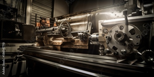 machinery, industrial, factory, manufacturing, metallurgical, workshop, repair, work, abstract, background, metal, part, industry, generative, ai