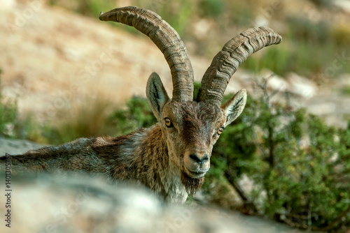 Macho de cabra hispánica pirenaica, en el parque natural de Cazorla, Segura y Las Villas.