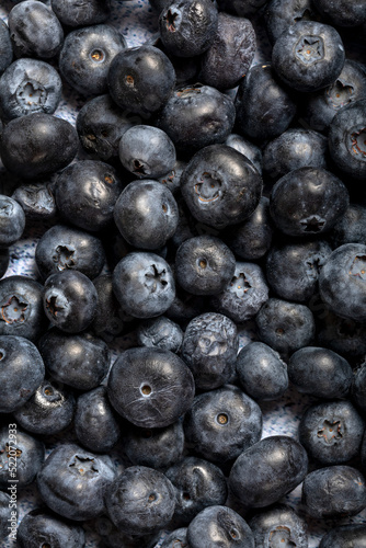 Macro close up of unwashed blueberries.