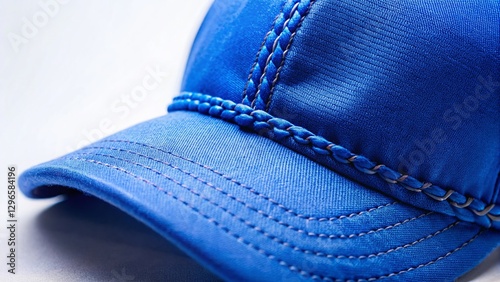 Macro Close-up of a Blue Baseball Cap on White Background - High-Resolution Stock Photo