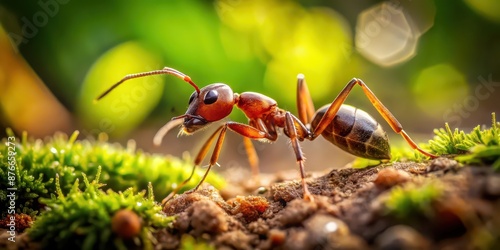 Macro close-up of a busy ant working in its natural environment , insect, tiny, teamwork, nature, colony, wildlife