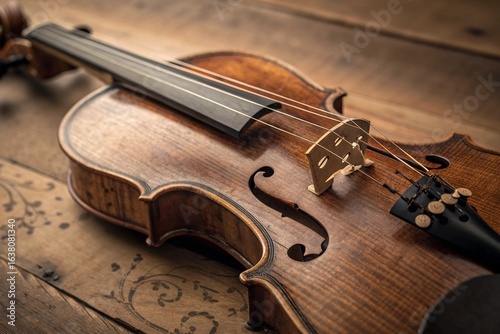 Macro Fine Art Photograph of Violin Strings and Bridge – Warm Textured Close-Up