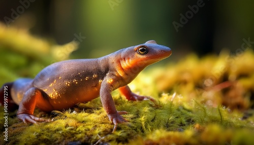 macro image of a newt in a forest