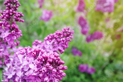 Macro image of spring lilac violet flowers. Selective focus.