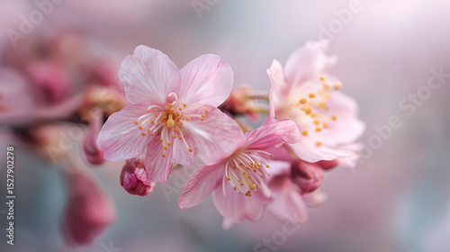 Macro of cherry blossom petals, soft pink hues, extremely shallow focus, hazy background with light leaks