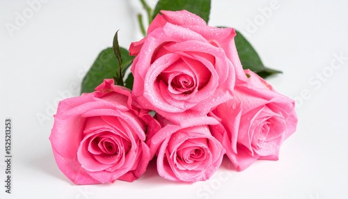macro photo shot of pink roses and dew drops that are sticking on its, white background