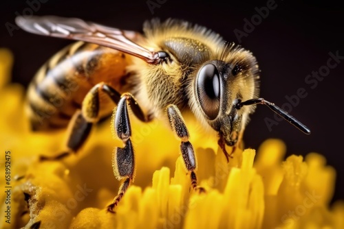 macro picture of a bee collecting pollen