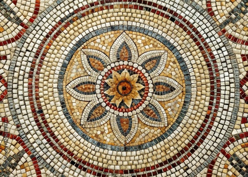 Macro Shot: Colorful Circular Roman Mosaic Tile Pattern - Seamless Texture
