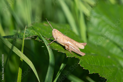Macro shot of a rufous grasshopper (gomphocerippus rufus)